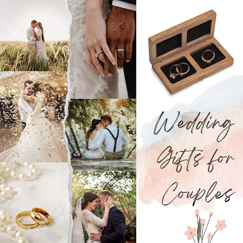 - 💘 SAFER - Uniquely crafted ring box made with genuine walnut wood finished with a semi-gloss finish and enclosed securely with a magnetic enclosure. An elegant way to store 2 of your most precious rings, hidden magnetic clasp and metal connection design makes the wood ring box for wedding day both beautiful and functional ensure that your rings are safely kept.