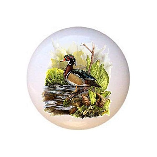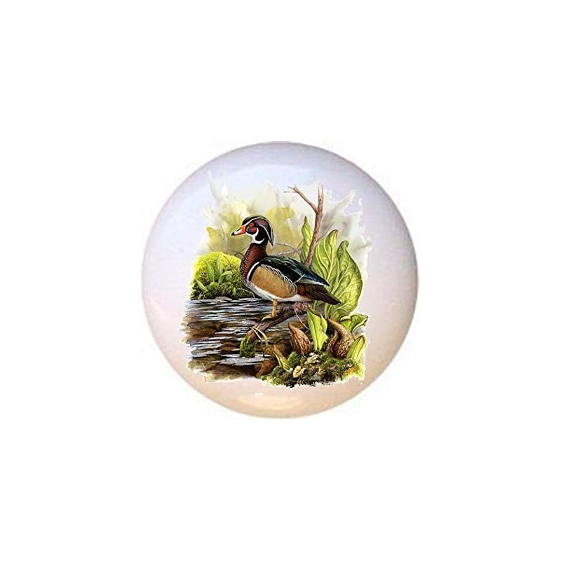 Wood Duck Design #1080 - Ducks - DECORATIVE Glossy CERAMIC Cupboard Cabinet PULLS Dresser Drawer KNOBS