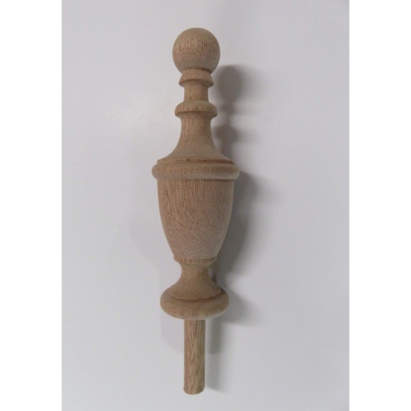 Large beautiful Finial. Your Choice: Red Oak, Hard Maple, Black Cherry, Black Walnut or Mahogany. Wooden Clock, Bed Post, or Craft Finial. This Finial will stain up beautifully for you. It is 6 inches high (not counting the mounting dowel). It is 1 7/8 inches in diameter. 1/2 inch mounting dowel, 2 inches long. The base measures 1 1/2 inches.