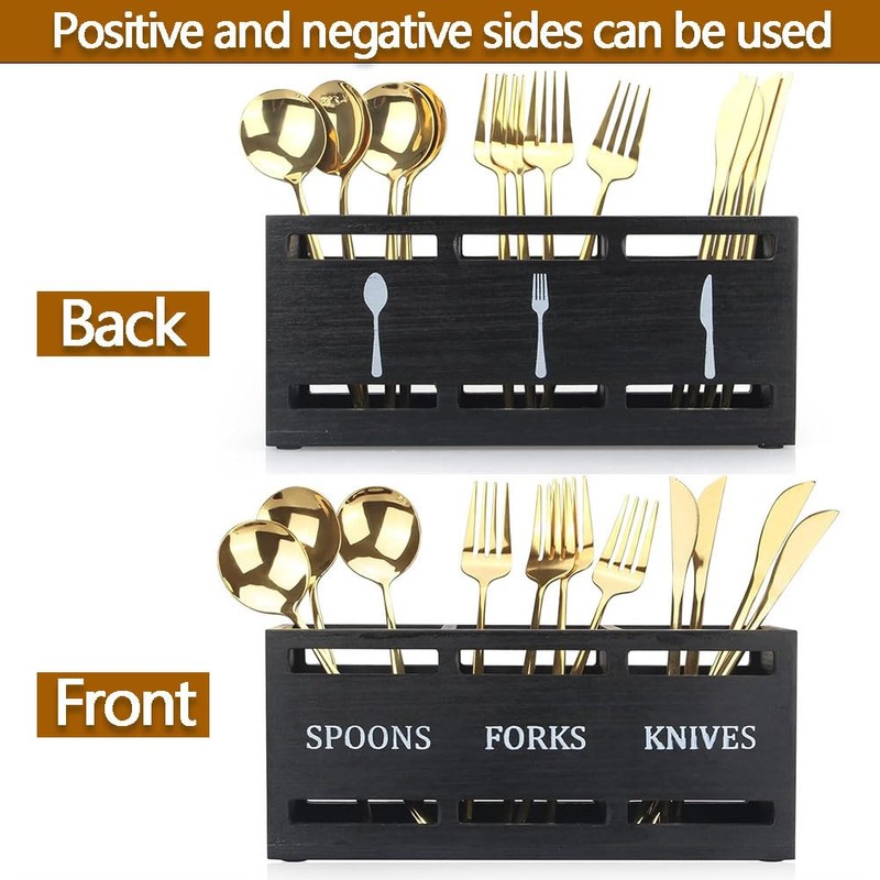 - 【Smart Design with Clear Symbols】Designed with double-sided cutout icons and labels for spoons, forks, and knives, this flatware caddy allows for quick identification and neat organization. Guests can easily place or retrieve utensils without confusion—functional, hygienic, and stylish