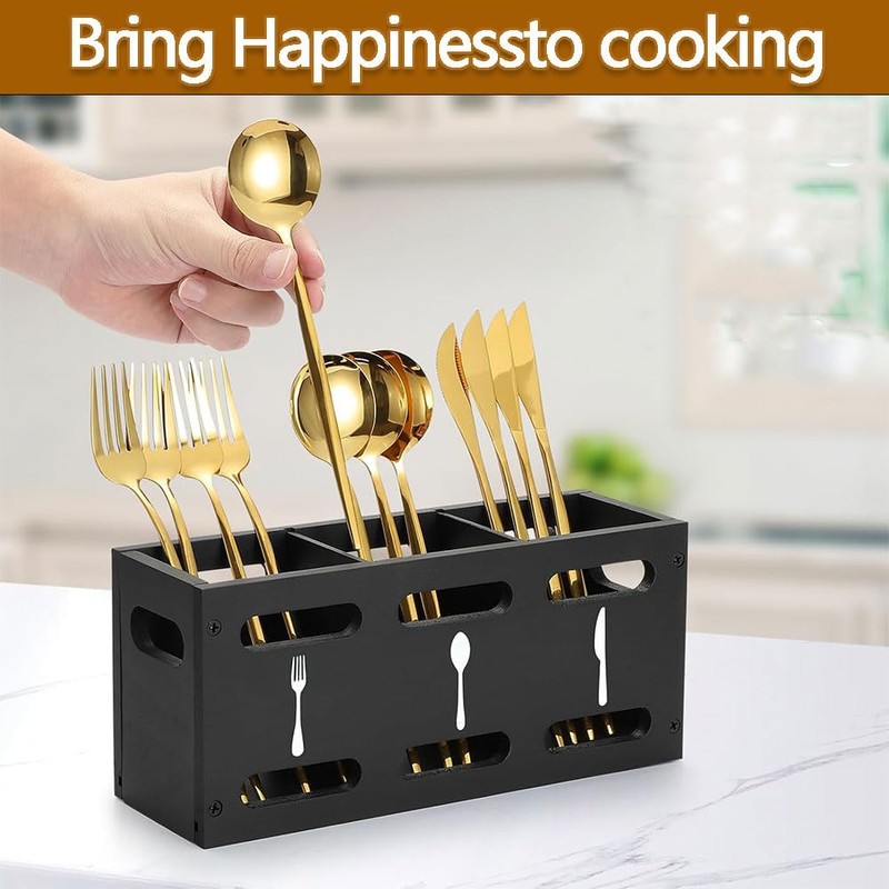 - 【Organize with Ease】This wooden utensil holder is perfect for storing everyday silverware like forks, knives, teaspoons, and soup spoons, as well as kitchen tools such as tongs, can openers, and thermometers. It keeps your supplies neatly arranged and easily accessible while adding charm to your countertop