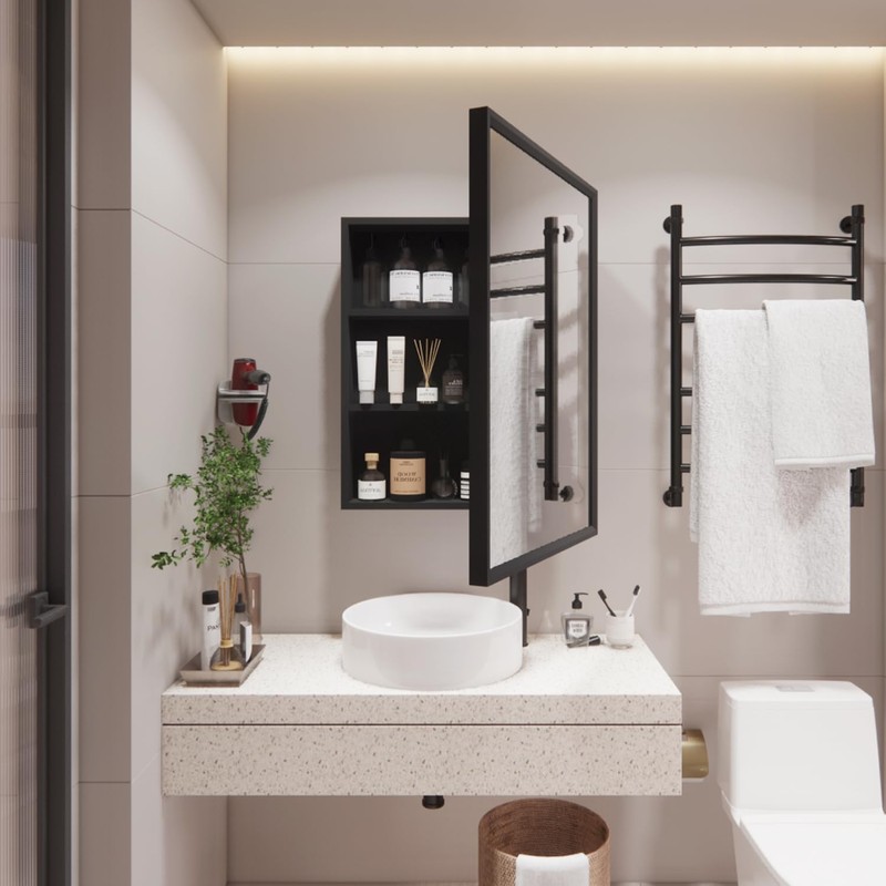 - The black medicine cabinet carcase is made of solid wood, which ensure long-lasting use.