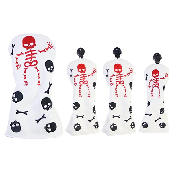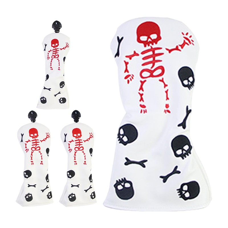 Wood Golf Club Covers - Skeleton Pattern Golf Driver - PU Wood Golf Headcover, Golf Headcovers Protector, Embroidery Golf Driver for Outdoor Activities Golfer