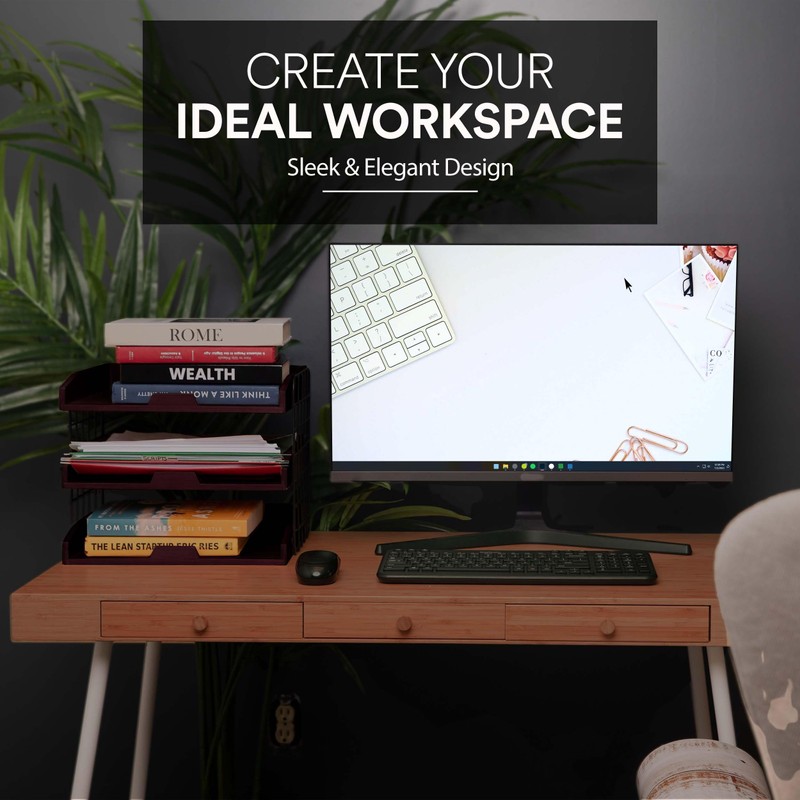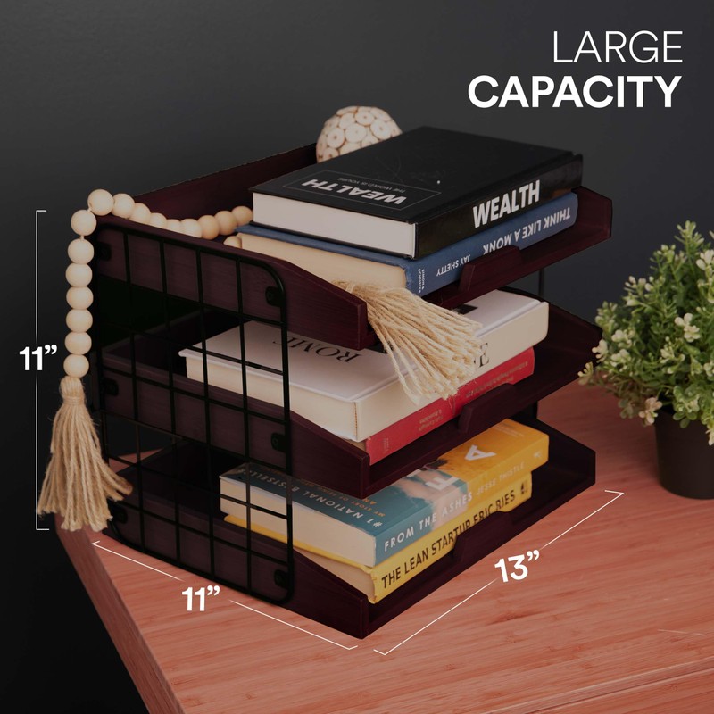 • MAXIMIZE SPACE- With three spacious shelves at your disposal, our paper tray organizer wood provides ample room for organizing your files and small objects. Create a clutter-free environment and increase your productivity. Finally, you'll have more desk space for what matters most.