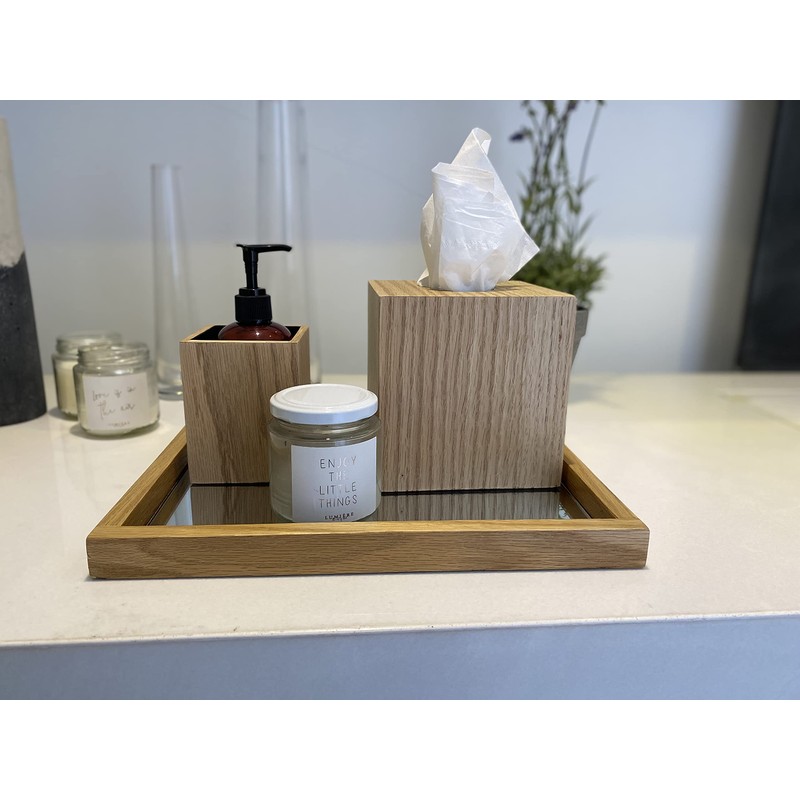 Wood México Wood Kit 2 Kleeneras Caja de Pañuelos , Forma de Cubo, Madera 100% Natural Nogal, Encino y Encino Negro Con Hermosa Veta, Práctica y Elegante, material de alta calidad, capacidad 60 pañuelos desechables (Encino)