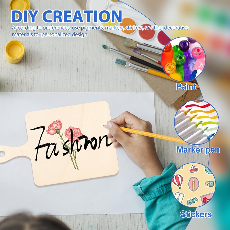 This set of unfinished wood cutting boards offers a good combination of functionality and creativity. With 24 boards in the set, users have plenty to work with. The boards' sturdy tetxture ensures they can withstand various uses, and the smooth surface provides a good base for decoration.