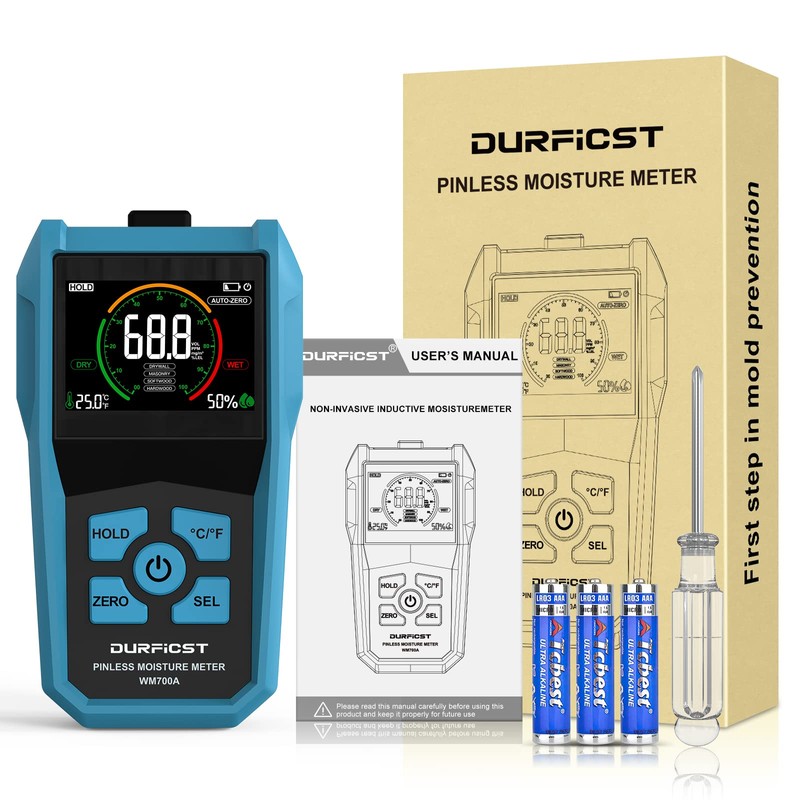 - Notes and after-sales service: Please be careful. DURFIST hygrometer measuring methods are non-destructive measurement unlike traditional needle hygrometers, and the measurement results may vary from the needle hygrometer as measurements are relatively not the absolute value. However, this does not mean that measurements are inaccurate. Relative measurement is very effective for quickly comparing the water content of a material or the amount of moisture in different areas of the same material. Also, we have a 2 year warranty period, if you have any questions during use, please feel free to contact us