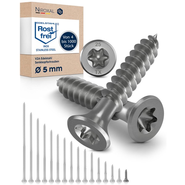 - Our range of solid stainless steel universal screws or wood screws inspires professionals as well as ambitious DIY enthusiasts with its high-quality anti-friction coating and wobble-free Torx drive. The hexagon socket allows easy, precise positioning and countersinking of the Torx 5x16 wood construction screws. 16 mm stainless steel wood screws are the optimal solution when it comes to durable and reliable connections indoors and outdoors.