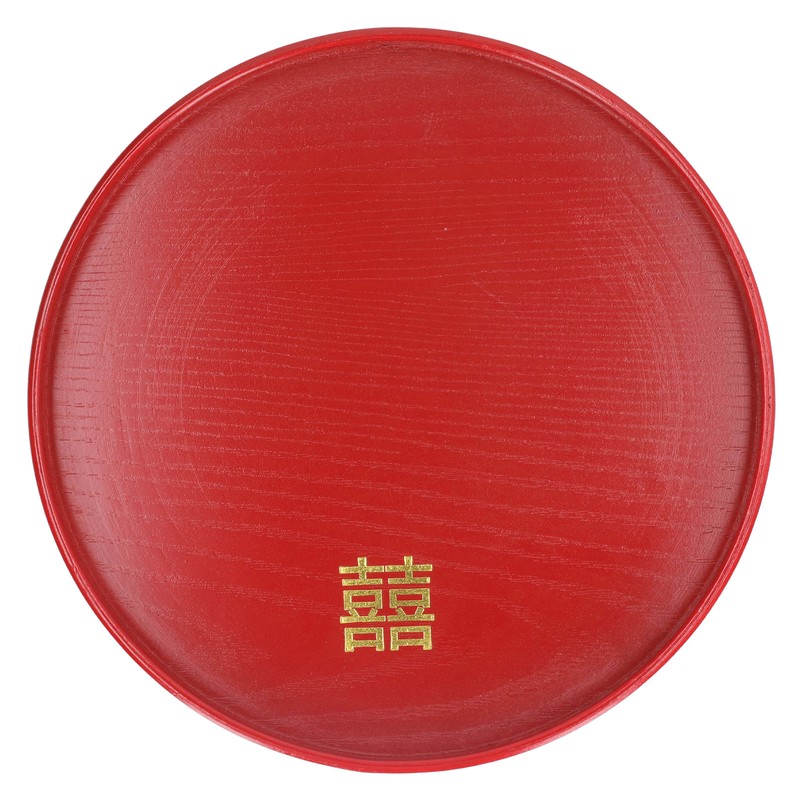 Wood Serving Tray Decorative Serving Platter Snack Fruit Plate for Living Room Coffee Table Kitchen CounterTop Red Round M