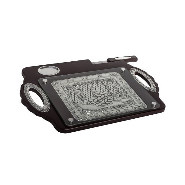Wood & Silver Plated Challah Board with Knife