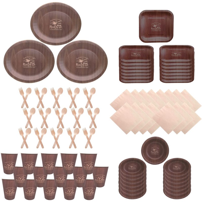 Wood Style Fancy Disposable Dinnerware Set (Brown for 15 People)