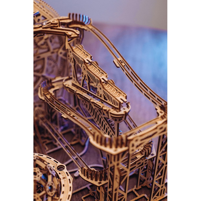 - PERPETUAL MOTION MACHINE - To create this marble roller coaster, we were inspired by perpetual motion of the galaxy. It’s amazing to watch the marbles move like planets and stars! Wood model kit is equipped with an electric motor powered by 4 AA batteries, 1.5V. Batteries are not included in the kit