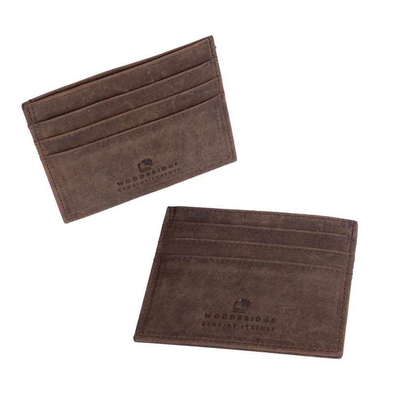 WOODBRIDGE Men's Genuine Leather Credit Card Holder | RFID Blocking | Minimalist Wallet | with Box (Rustic Brown)