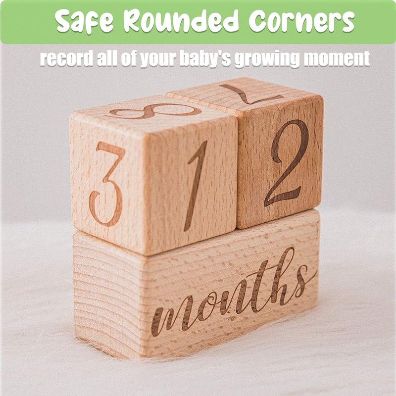 - MADE OF PREMIUM MATERIAL: Our baby monthly milestone are crafted with natural pine wood, durable and sturdy, smooth surface and rounded corners no burrs on the edges, this size is perfect for newborn baby photo shoots. There are two number age blocks that include 1, 2, 3, 4, 6 or 9, 7 and 1, 2, 3, 5, 8, 0. There is one larger block with weeks;months;years;grade