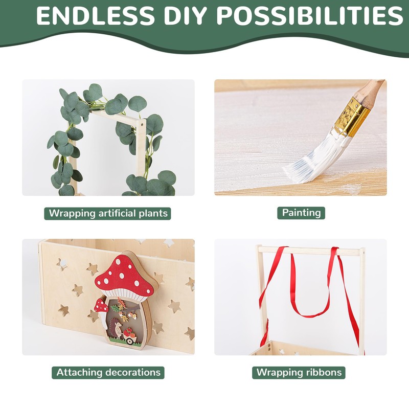 - Easy to Assemble:The baby shower gift basket is pre drill with matched screws, no need to drill holes, easy assembly for you. You can use baby hangers to the handle for easy hanging of baby clothes, and attach the eucalyptus garland on handles or crate. You can DIY decorate this basket in any way, choose to paint, add ornaments, decorate it with artificial flowers, ribbons, etc.