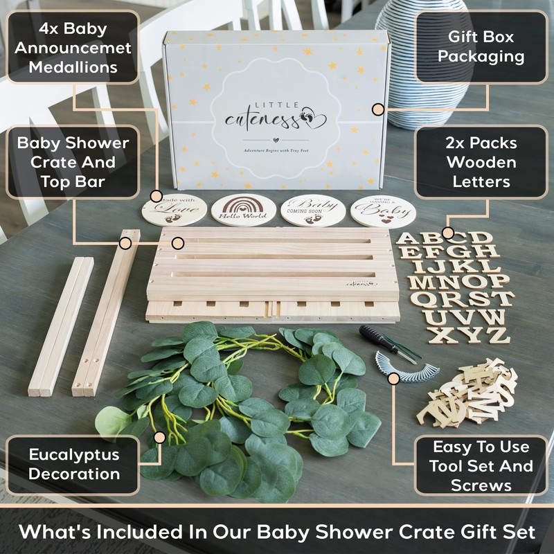 Wooden Baby Shower Crate Closet - Customizable Wooden Crate Box with Dual Rod System, Personalized Baby Shower Basket Alphabet Letters, Easy Assembly Baby Baskets for Baby Shower (Natural Wood)