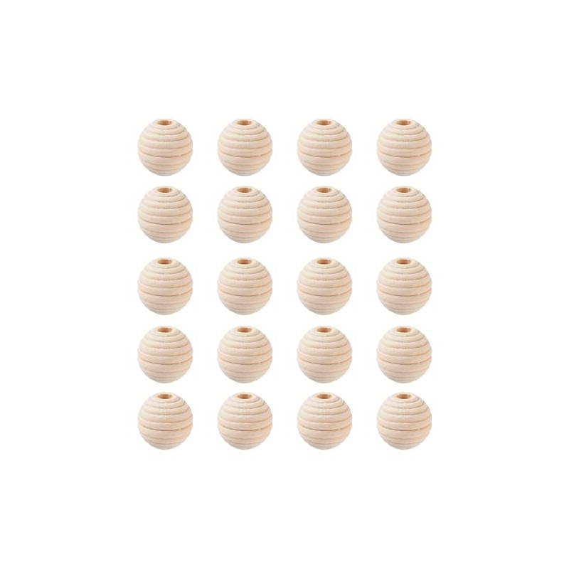 Wooden Beads 20 mm Beehive Striped Shape Natural Wooden Balls Round for Threading Crafts 6 mm Large Hole Spacer Beads