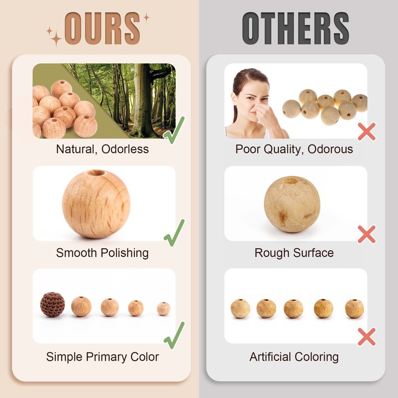 - Wooden beads details: wooden beads with hole adopt precise drilling and smooth polishing processes, are easy to thread and feel comfortable. Crochet round wooden beads adopts crochet technique that wraps round wooden beads tightly and tightly
