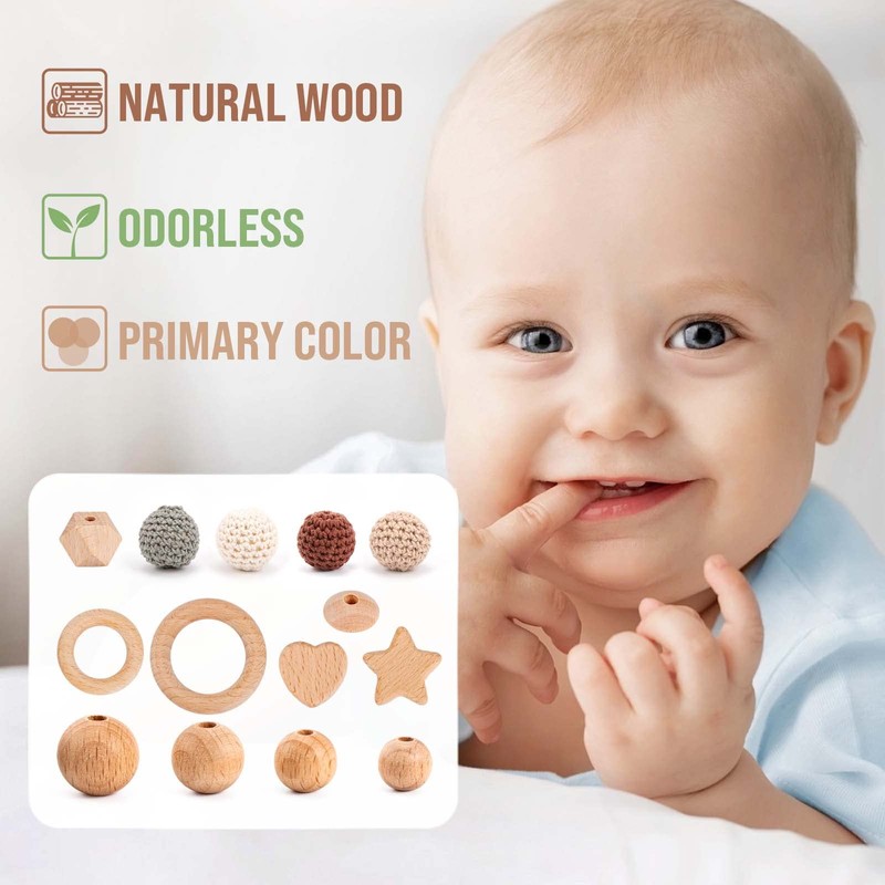- High quality material: wooden beads include two types: the beech wood beads are made of natural beech wood, no smell no additional color, primary and warm color, natural texture. Crochet wooden beads are covered with cotton thread, warmer and softer than other wooden beads, crochet wooden beads include 8 colours, which can meet different DIY combination needs