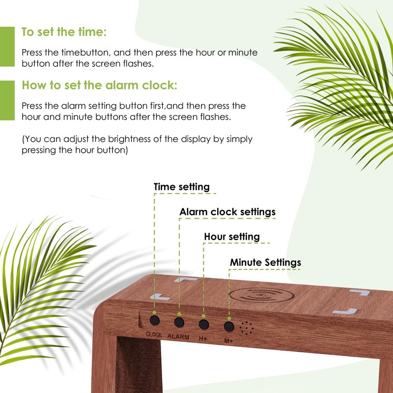 Wooden Bedside Table Lamp with Wireless Charging Station, LED Clock Display, 3 Night Light Modes, Bamboo
