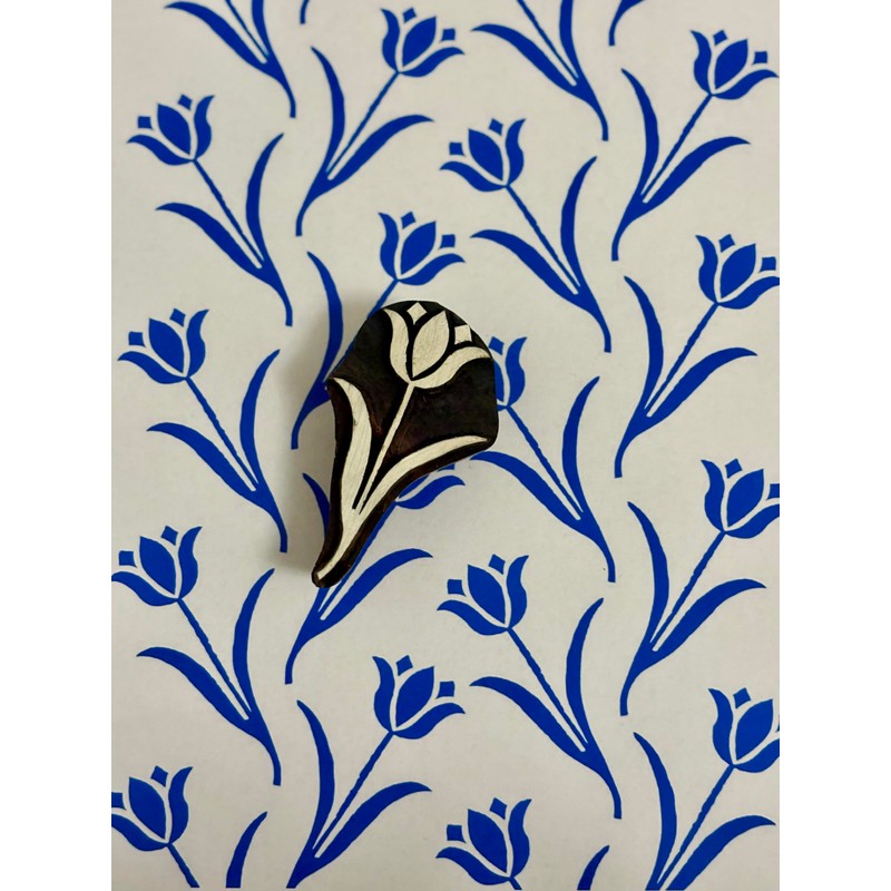 Wooden Block Printing Stamp, Floral Design, Handcrafted Tulip Pattern, Set of 2