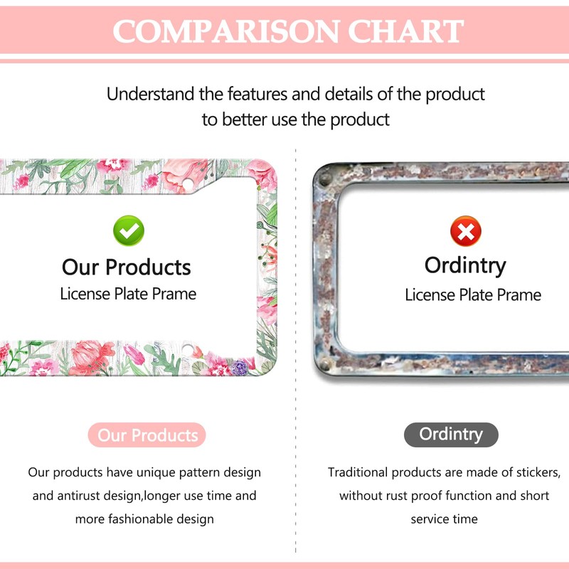 - đăPrint Design IdeasăFunny pattern, beautiful and uniqueïŒwhether you park your car in the yard or travel outdoors, your license plate will stand out.These frames use uv and water-resistant ink, so no need to worry about fading or smearing.Advanced digital printing process to prevent corrosion and rust. Whether it's a car wash, heavy rain or hot weather, it still looks brand new.