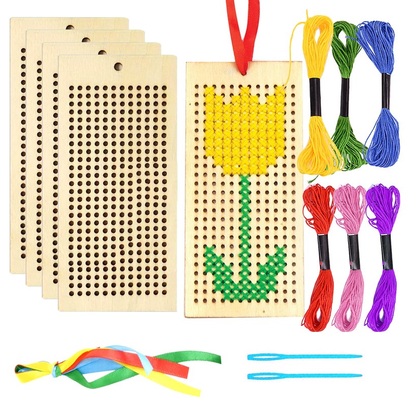 - 【Package】:Wooden bookmark embroidery kits are including 5pcs pre-punched wooden bookmarks,6 bunches colored cross stitch thread,6 colored ribbons and 2 pieces plastic needles,all-in-one,enough to meet your crafting demands.
