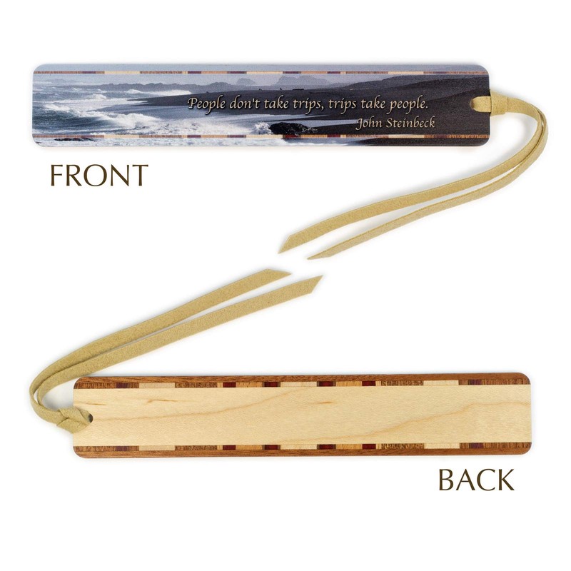 Wooden Bookmark with Inspirational John Steinbeck Quote and Beach Scene Photograph by Mike DeCesare - Made in USA