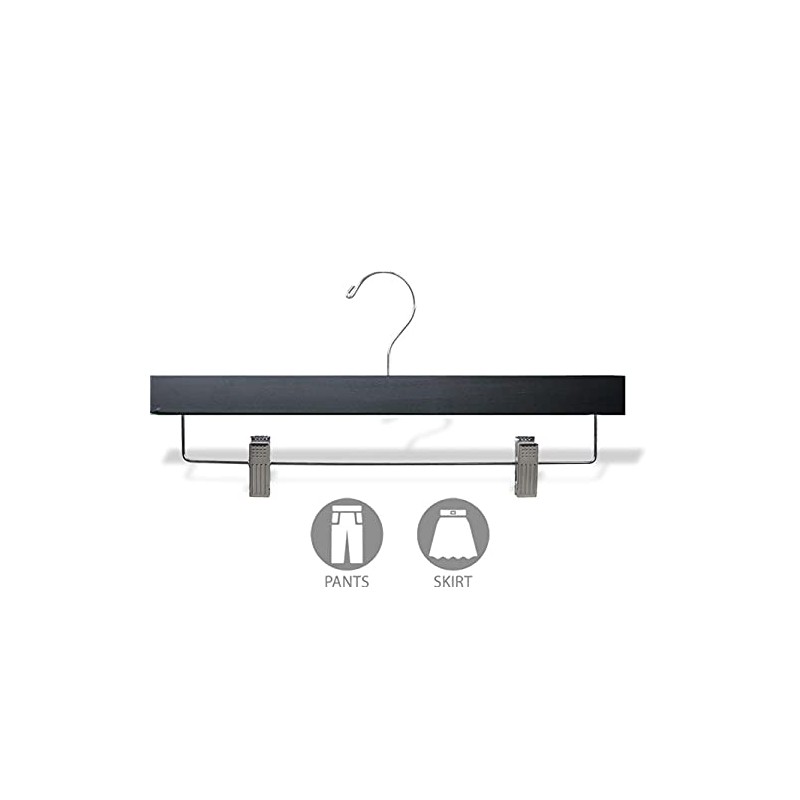 - HIGH QUALITY, GREAT VALUE: These wood pants hangers are made from high-grade solid hardwood and are lacquered for a smooth finish to prevent clothes from snagging. These premium crafted hangers add a luxurious look to your home closet or retail space that will last for years.
