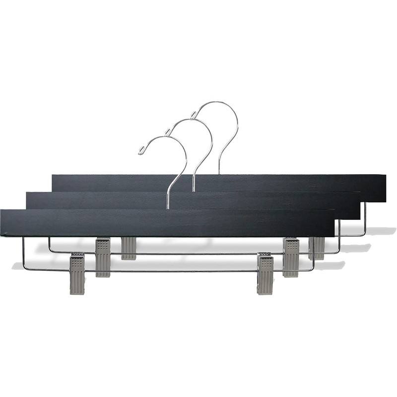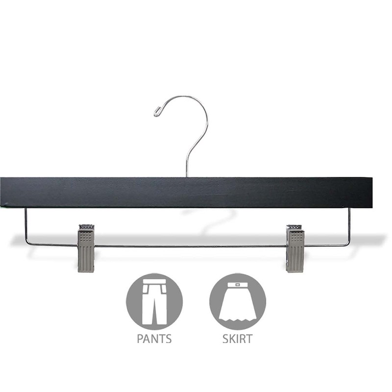Wooden Bottom Hanger, 100 Pack Matte Black Solid Wood Pants Skirt Hangers with Adjustable Clips