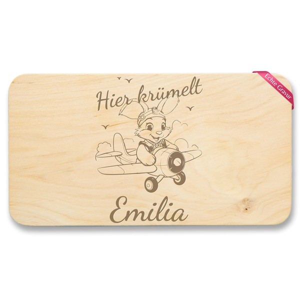 Wooden Breakfast Board with German Text "Hier krümelt" ("Hier krümelt Name Rabbit Plane") 22 x 12 cm Wooden Easter Easter