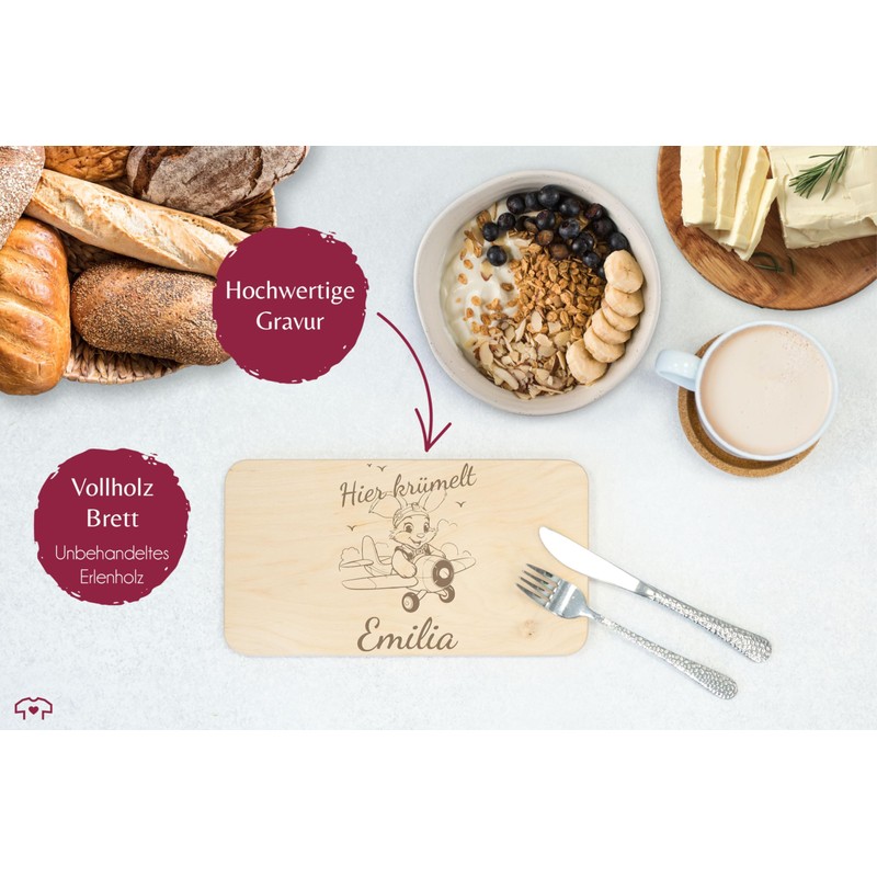 • Plane graphics: the theme of aircraft is becoming increasingly popular and you are looking for matching kitchen board. Have you inquired about "Easter breakfast board"? This cute motif is the perfect gift and is guaranteed to put a smile on rabbit lovers and children. "Hier krümelt" is a cute statement and also the highlight for any occasion