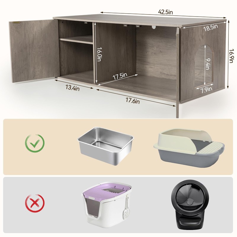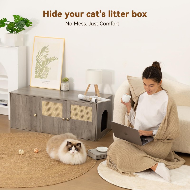 - Pet-Safe and Durable: Crafted from high-quality fiberboard that meets CARB and EPA standards, this cat box enclosure ensures pet safety, environmental friendliness, and long-lasting durability.