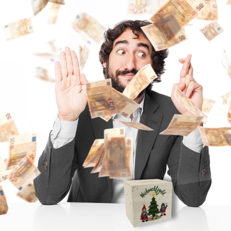 - The money box is a cute Christmas miracle. It features a cheerful Christmas tree surrounded by adorable Christmas gnomes and glittering gifts. The white background with small stars creates a winter atmosphere. Money boxes are not only decorative, but also a playful way to learn how to use money.