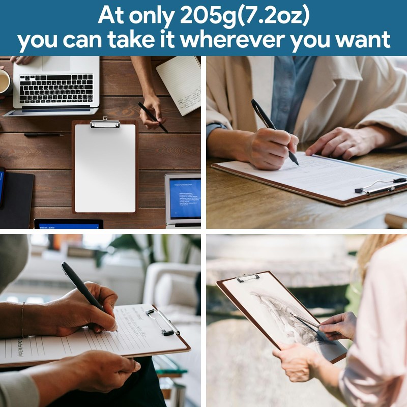 - STRONG AND DURABLE: these A4 clipboards with metal clamp are made from a lightweight and durable wood chip plastic that won't chip even if accidentally dropped to the floor. As the material is lightweight and not bulky like cheap clipboards, the surface is smooth and waterproof, so it is easy to clean.