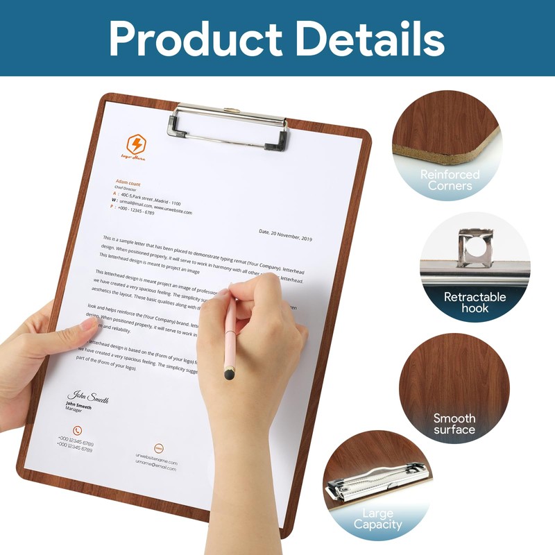 - Versatile: this A4 clipboard wood metal clamp is versatile and is ideal for various places such as offices, factories, hospitals, schools and more. Perfect for storing drafts, artwork, bills, worksheets and other documents. We attach great importance to the selection of high-quality materials and provide attentive service. Our products are characterised by quality and exquisite packaging to give you a satisfactory shopping experience.