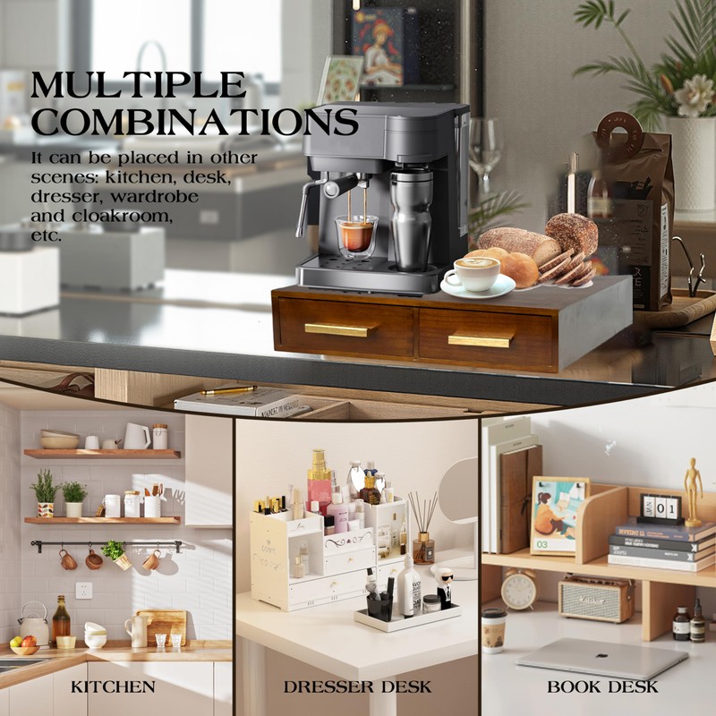 - Multi-Use Design with Dividers--The large drawer includes two dividers for easy organization of coffee pods, tea bags, or office supplies. It’s a versatile tea storage organizer or k cup drawer organizer that works perfectly in your coffee station or office, helping you save space while staying organized.