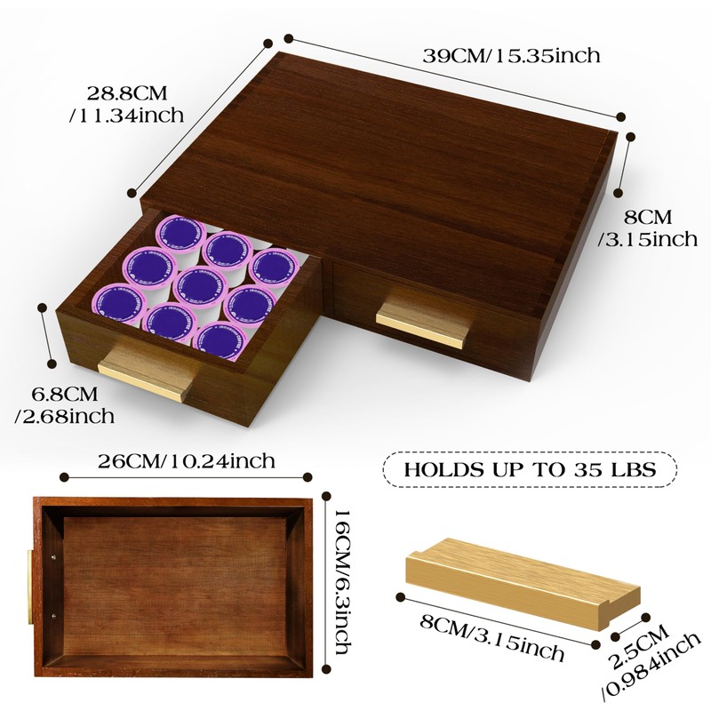 - Smooth and Safe Finish--This k cup drawer organizer is carefully sanded with 320-grit sandpaper to ensure a smooth, polished finish. The carefully smoothed edges prevent scratches, and the gliding drawers open and close effortlessly, making it safe and easy to access your coffee pods.