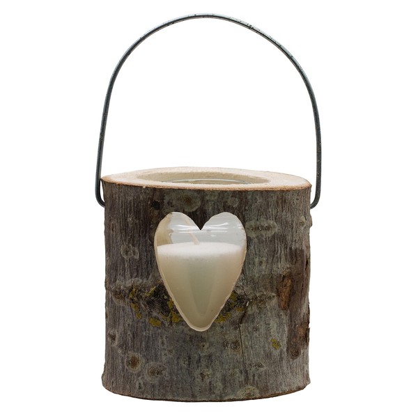 Wooden Decorative Lantern with Heart - Size S - Natural Light for Indoor & Outdoor Use