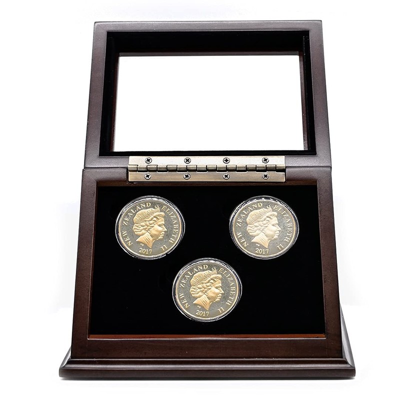 Wooden Display Case Box for 3PCs Challenge Coins with Slanted Glass Window fits 1.75 inch (45mm) Coin Capsule or Coins- Coins are Not Included