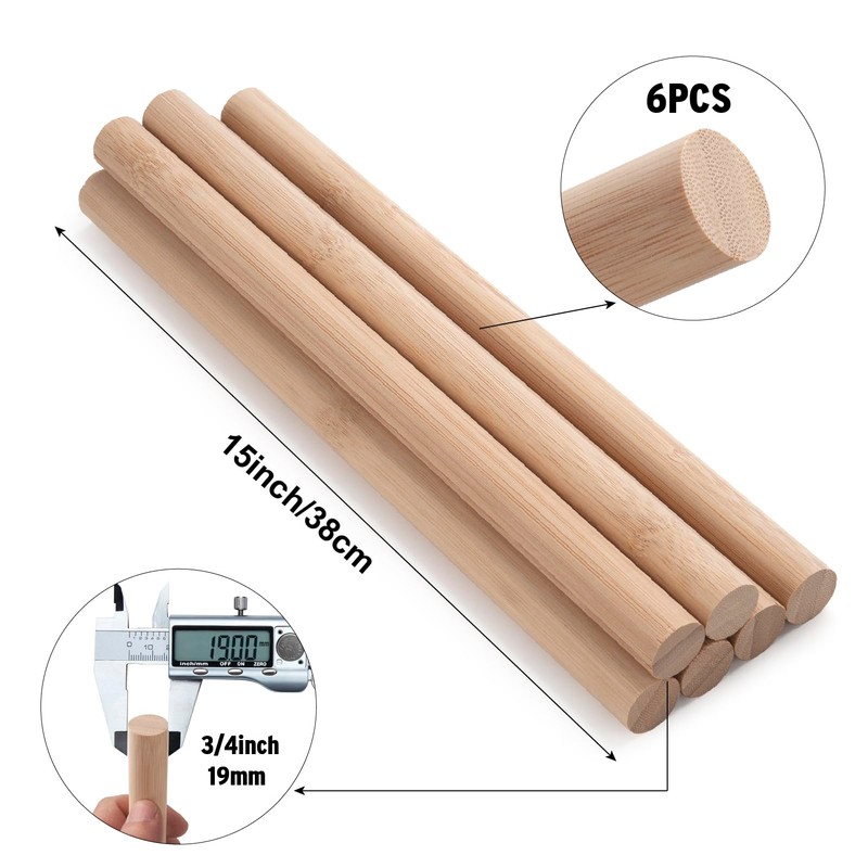 - Package Included----6 Pack bamboo dowel rods, 3/4" (1.9cm) in diameter, 15" (38cm) in length.