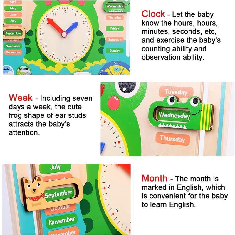 Wooden Frog Design Clock Toy, 1 Set Cute Clock Design Learning Toy, Time Learning Tools, Interesting Gifts for Learners
