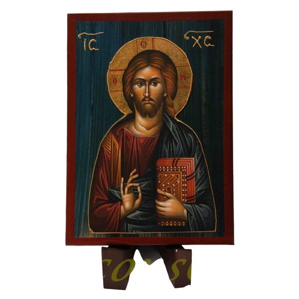 Wooden Greek Orthodox Icon of Jesus Christ Our icons are made of high quality screen printed on specially treated wood using advanced aging techniques and other high quality materials that ensure the waterproof and protection from sunlight. All symbols are unique and original, handmade in high quality. Note: the wooden base is not included