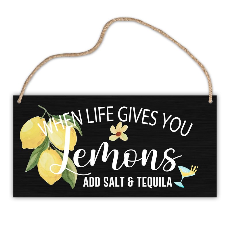 Wooden Hanging Sign Plaque, When Life Gives You Lemons Add Salt & Tequila, Motivational Quote Wood Wall Sign, Retro Farmhouse Home Decor Gift for Home Living Dining Bedroom Office Study -A26