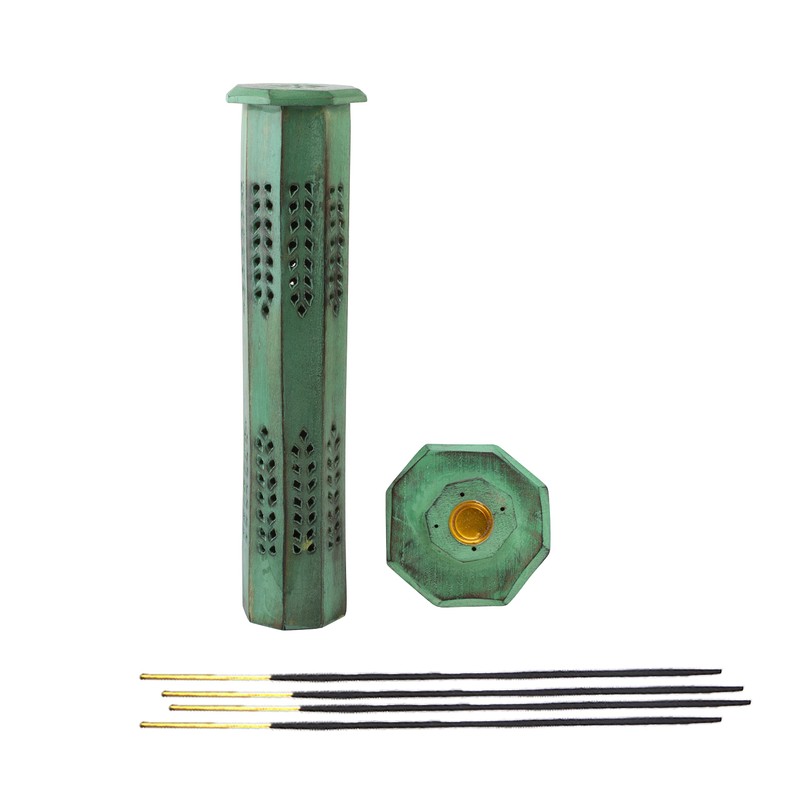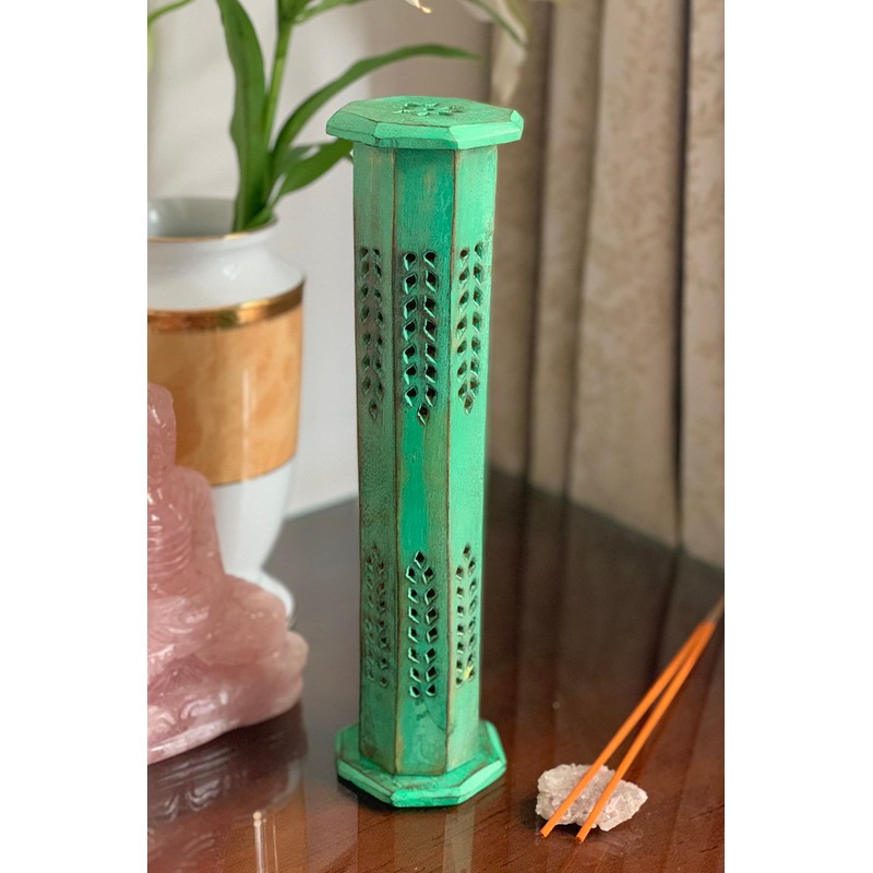 - HANDMADE & ECO FRIENDLY - Each tower has been individually hand crafted by Artisans using simple carving tools on Mango Wood, procured from Authorized Government Channels with the objective of sustaining both the environment, as well as the livelihood of the Artisans. The artisan has detailed small carvings in the wood to allow the fragrances to quietly escape while adding the required vibrations to any space the incense holder is placed in