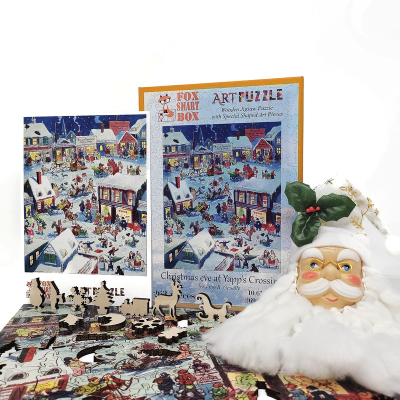 Wooden Jigsаw Puzzle for Adults - Uniquely Shaped Pieces - Made in The USA by FoxSmartBox - 263 Pieces - Christmas eve at Yapp's Crossing