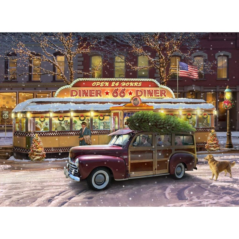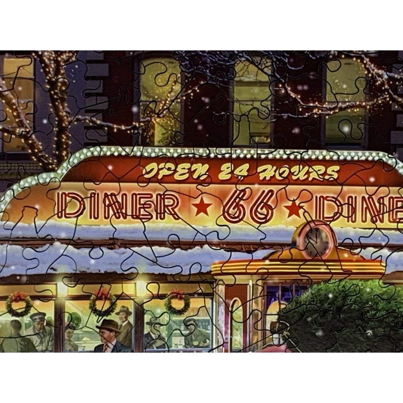 Wooden Jigsaw Puzzle for Adults - Christmas On Route 66 by Greg Giordano - 318 Pieces. Made in USA by Nautilus Puzzles