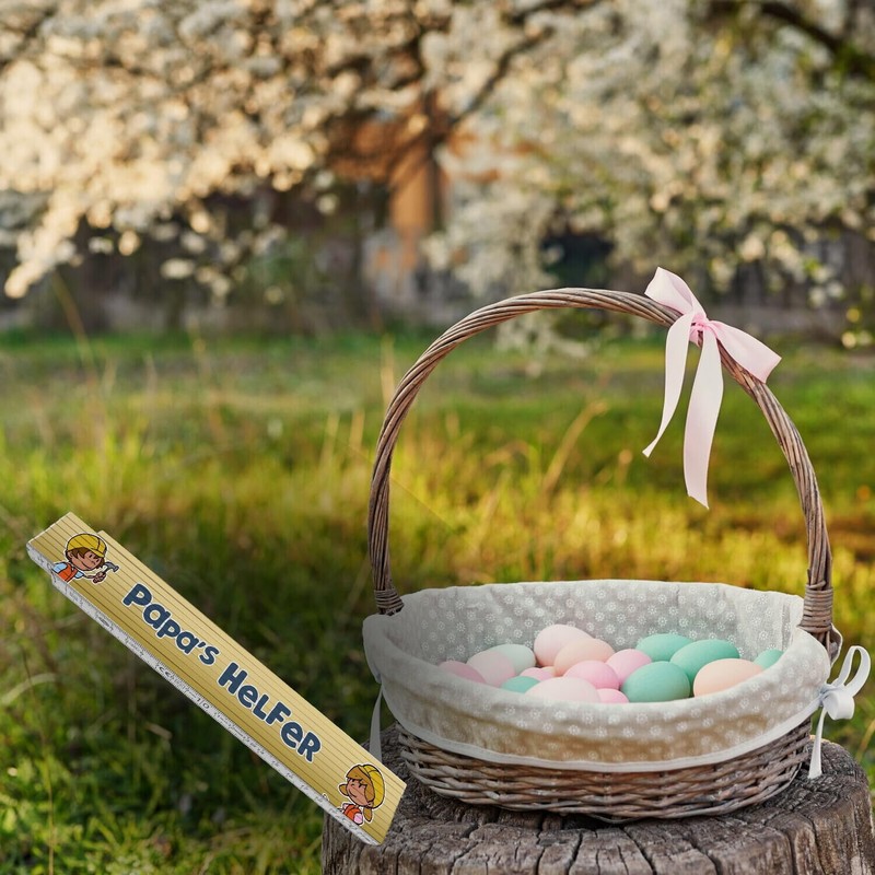 - The meter stick is printed with the words 'Papa's Helper' and the little characters of a boy and a girl.