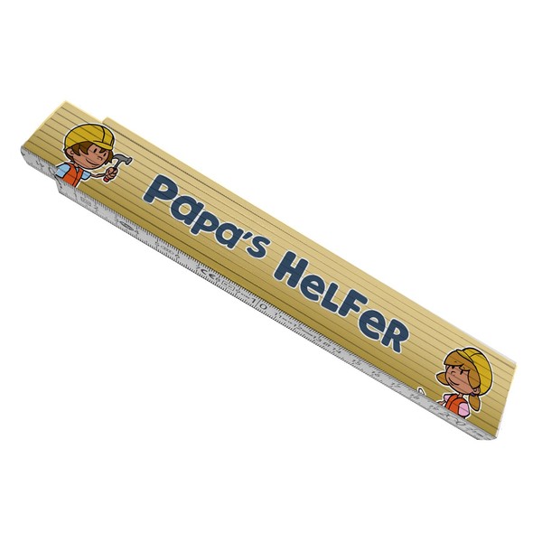 Wooden metre stick with cute motif for children and saying - Papa's Helfer as a fun gift for little construction workers who like to help their dad in the workshop