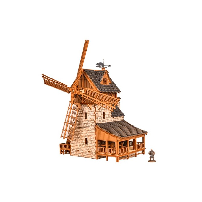 - [Do-It-Yourself (DIY)] : FRICTION-FIT ASSEMBLY Wooden Mill - Hybrid Medieval Windmill, Watermill, Blacksmith workshop Model; 28mm Scale, 32mm scale